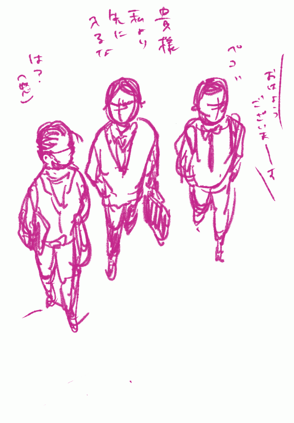 ゴトリメンバーのベンチャー企業に転職後、尾形主任(肩書きは仮)を紹介するゲンジロちゃん。